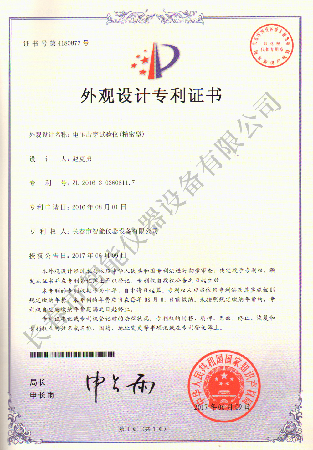 當(dāng)前位置:首頁 > 榮譽(yù)資質(zhì) > 外觀電擊穿實(shí)用新型專利ZL 2016 3 0360611.7
